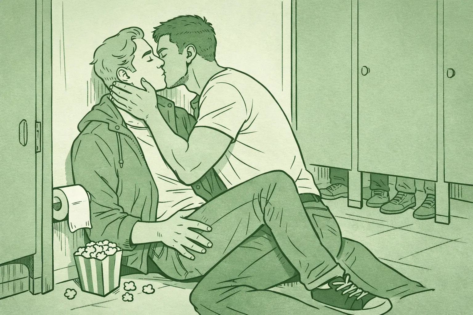 Date night doesn't have to end when the credits roll. For Jake (33) and Marcus (30), their monthly cinema tradition just got significantly more thrilling. The cinema bathroom hookup represents the perfect intersection of public thrill and private pleasure: a scenario that's become increasingly popular in MM romance and gay fiction.