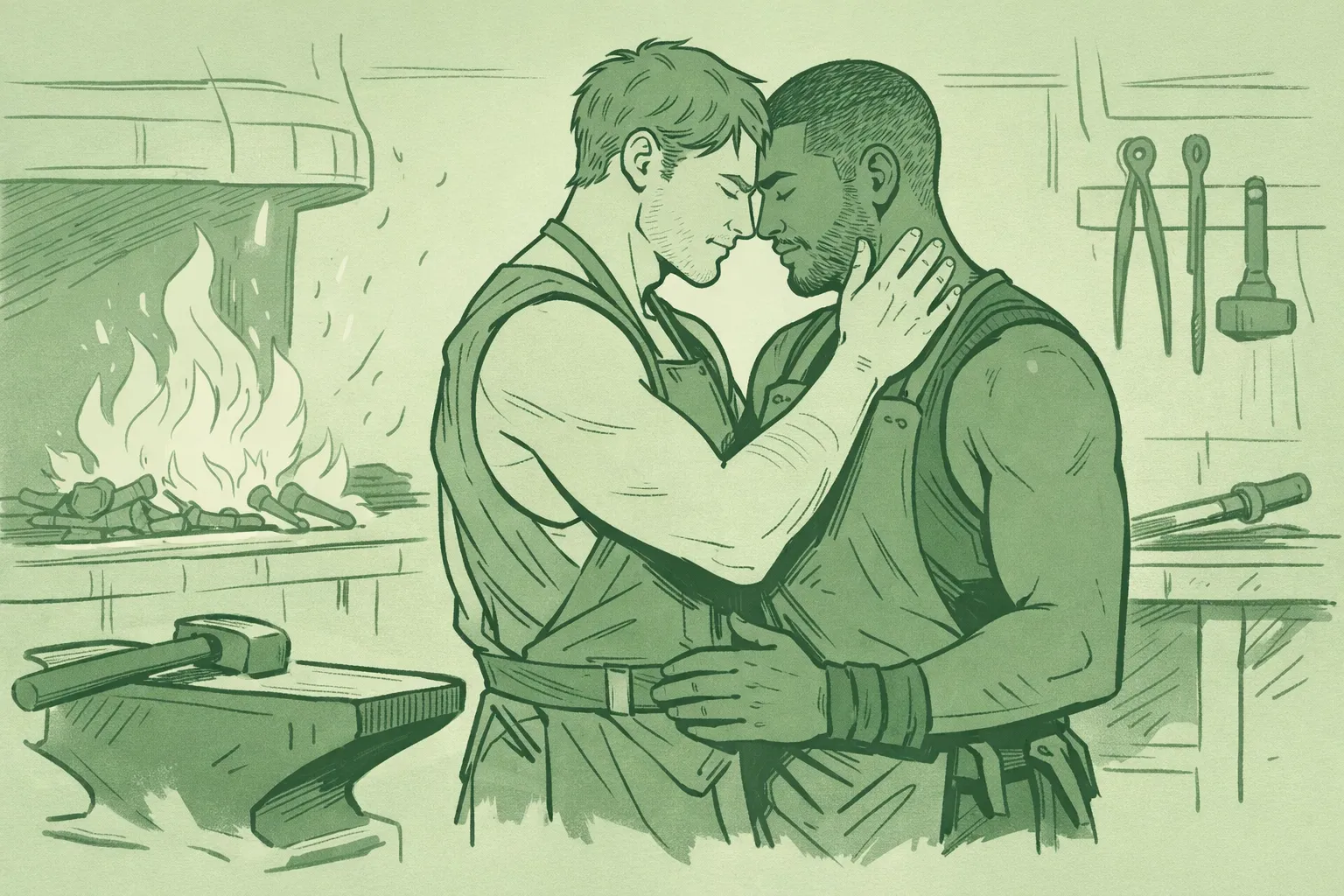 This MM romance novel centers on two men: a blacksmith and his assistant: who forge more than iron in the sweltering heat of their workshop. The noise of hammer on anvil masks whispered confessions. The roar of the forge conceals stolen moments. Their love becomes their rebellion.