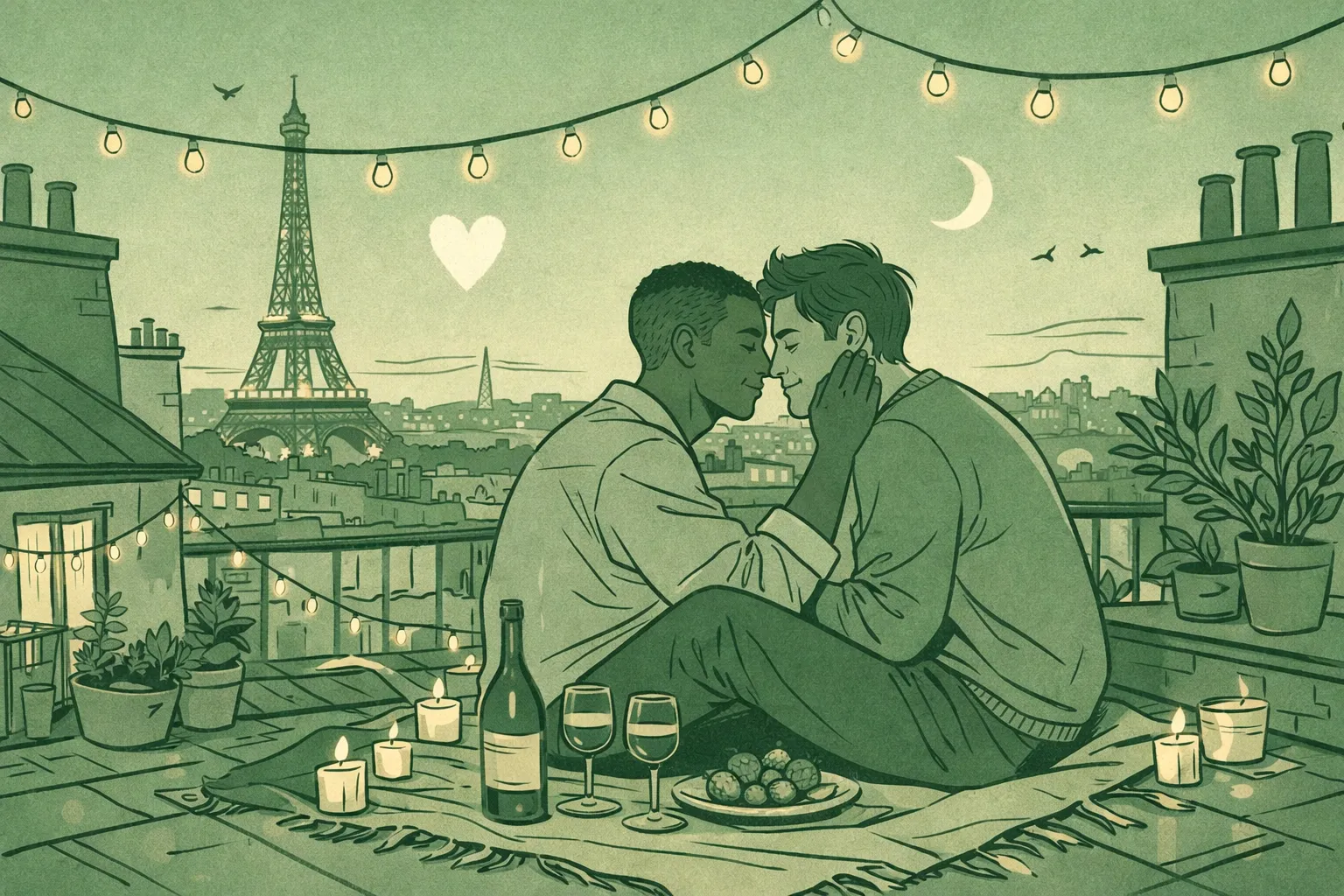 Forget the Eiffel Tower crowds and overpriced tourist restaurants. This Valentine's story centers on what real, lasting love looks like: two men who've built a life together, choosing a private rooftop dinner in Montmartre over the predictable romance of crowded landmarks.