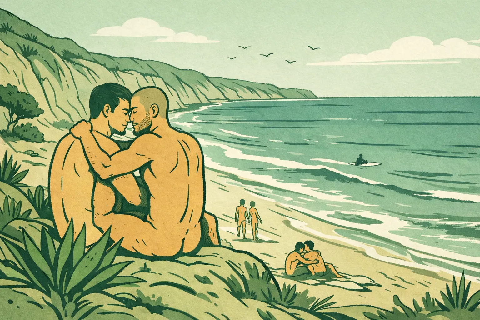 For gay men especially, there's something powerful about existing in public space as fully ourselves: bodies visible, relationships acknowledged, presence unmistakable. Black's Beach represents a kind of freedom that extends beyond mere nudity into the realm of authentic self-presentation.