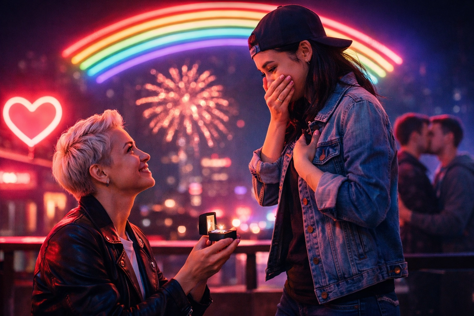 Here's what makes these midnight, neon-lit proposals so powerful: they're acts of visibility. Every time a queer couple gets engaged publicly, it normalizes our love stories. Young LGBTQ+ people walking by see possibility. Older community members see progress. Allies see love as love, full stop.