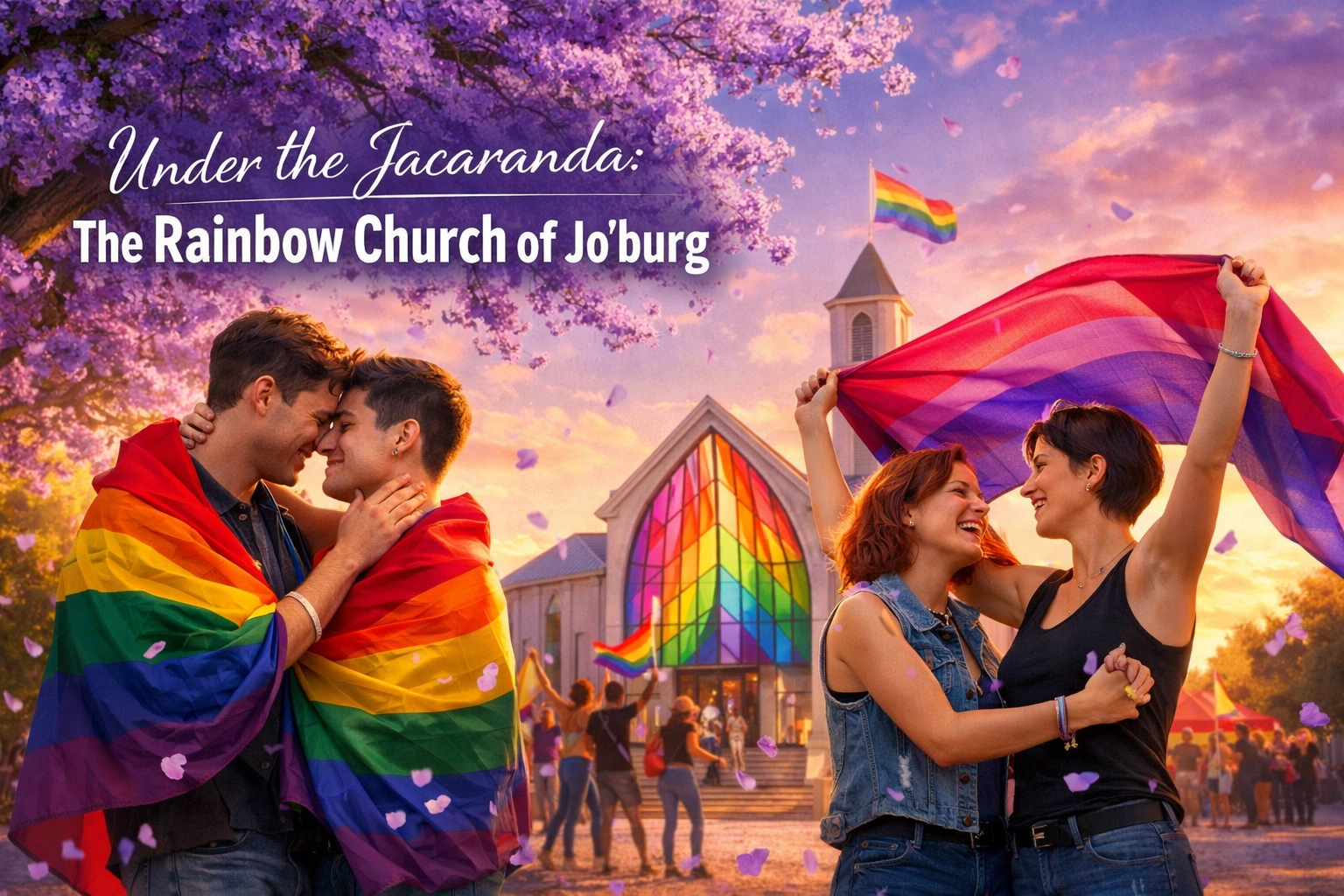 Part 7 of the Sacred Hearts series The jacaranda trees were in full bloom the first time Thabo walked through the doors of the Rainbow Church. Purple petals carpeted the pavement like a lavender blessing, and he took it as a sign. After twenty-eight years of hiding, of praying himself straight, of pretending his heart …