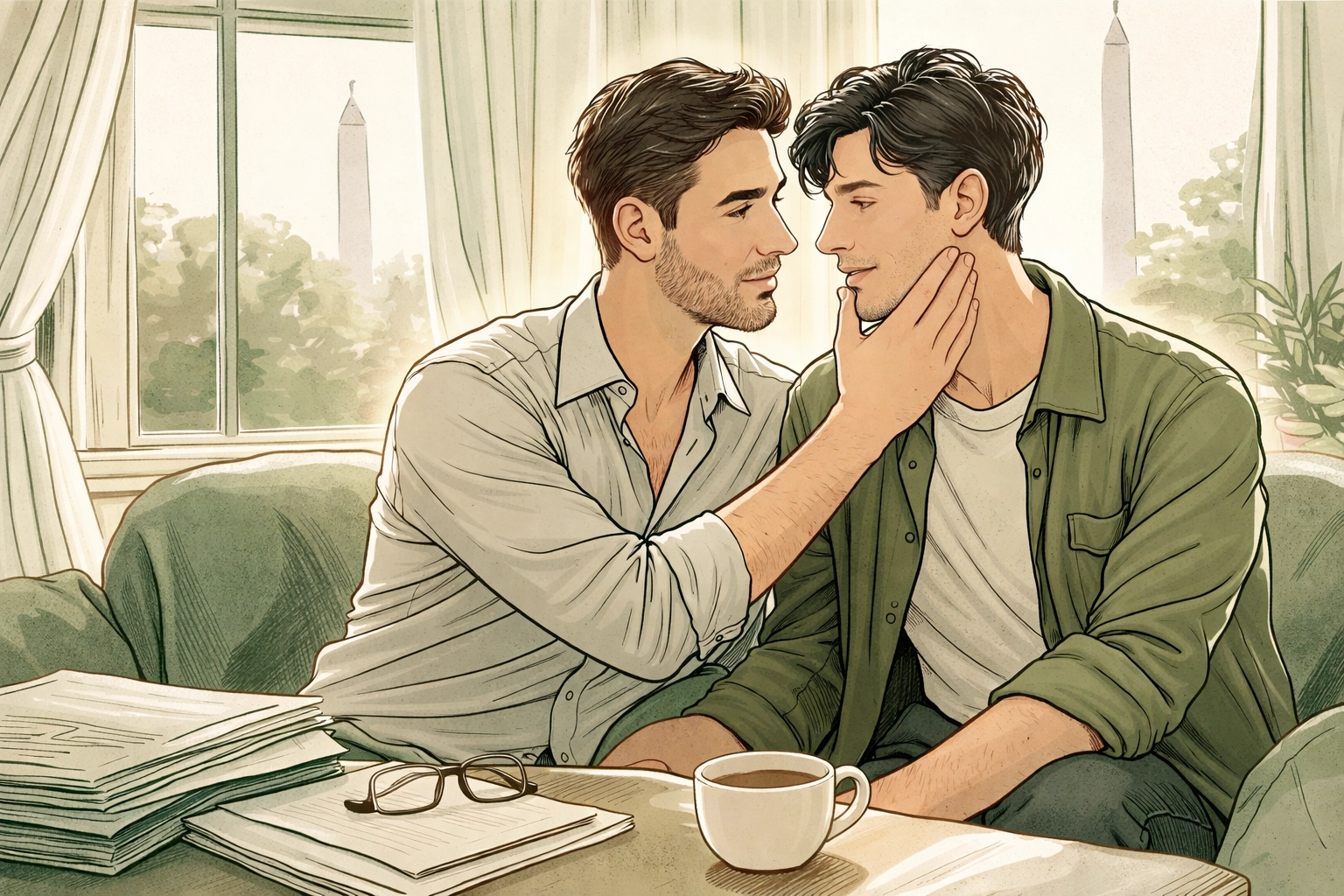 The President’s Secret is a sweeping, emotional journey across five formative years. It is the story of two men orbiting each other in a silent, agonizing dance of longing and restraint. Their love story unfolds in stolen moments: the charged silence of a dusty equipment room, a coded text sent in the dead of night, a single, desperate kiss on a rain-lashed street that changes everything. Evan, the strategist, tries to manage their passion like a university crisis, building intricate plans for a future “horizon” when they might be free. Liam, the heart, yearns for a truth that feels increasingly suffocated by the lie.